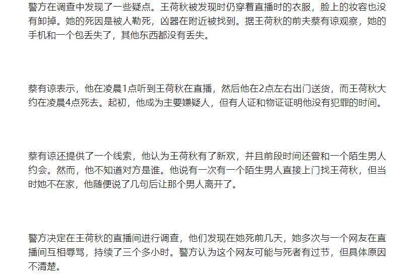 结语王荷秋的悲剧性死亡不仅结束了一段由美颜滤镜和虚拟礼物编织的幻想,也暴露了网络互动中隐藏的危机。